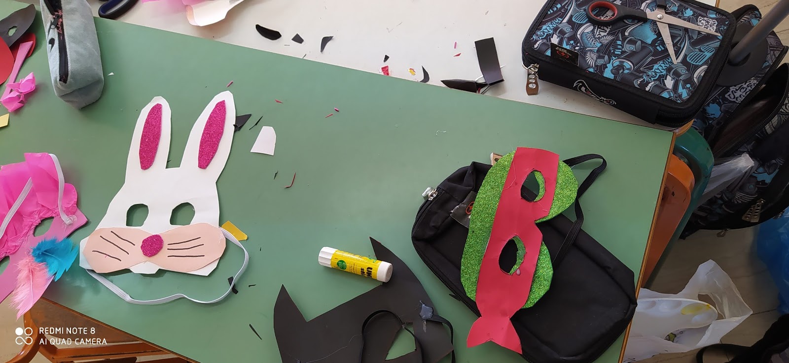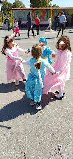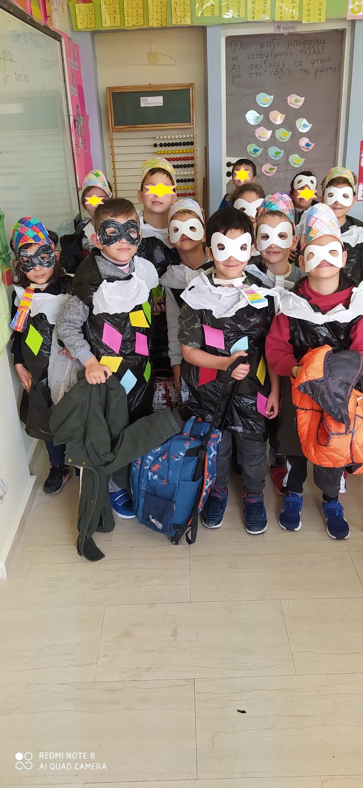 Την Παρασκευή 28-2-2020, αφού τελειώσαμε με τις αποκριάτικές μας χειροτεχνίες, βγήκαμε στην αυλή ντυμένοι με τις στολές μας και άρχισε το πάρτι!