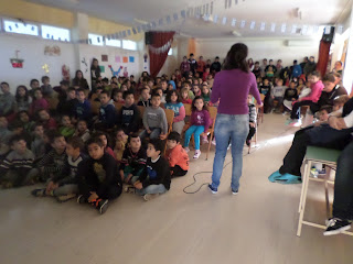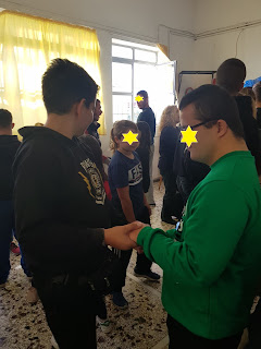 Αρχές του Δεκέμβρη το Ε.Ε.Ε.Ε.Κ. Τυμπακίου διοργάνωσε μια εκδήλωση στην αίθουσα πολλαπλών των νηπιαγωγείων Τυμπακίου με αφορμή την παγκόσμια ημερα ατόμων με αναπηρία. Οι μαθητές της Ε’ και ΣΤ’ τάξης του σχολείου μας, με τους δασκάλους τους και την διευθύντριά μας, κα. Αλεγκάκη Ελευθερία δε θα μπορούσαν να λείπουν από αυτή την εκδήλωση. Αφού παρακολουθήσαμε τη γιορτή τους, που ήταν πραγματικά υπέροχη, με πολλαπλά μηνύματα, ακολούθησαν οι συστάσεις και η γνωριμία των μαθητών μας με τους μαθητές του Ε.Ε.Ε.Ε.Κ. Στη συνέχεια τραγουδήσαμε και χορέψαμε όλοι μαζί. Τα παιδιά του σχολείου μας ευαισθητοποιήθηκαν και φέρθηκαν άψογα. Περάσαμε το μήνυμα, πως μπορεί να είμαστε διαφορετικοί, μα όλοι είμαστε ίσοι!
