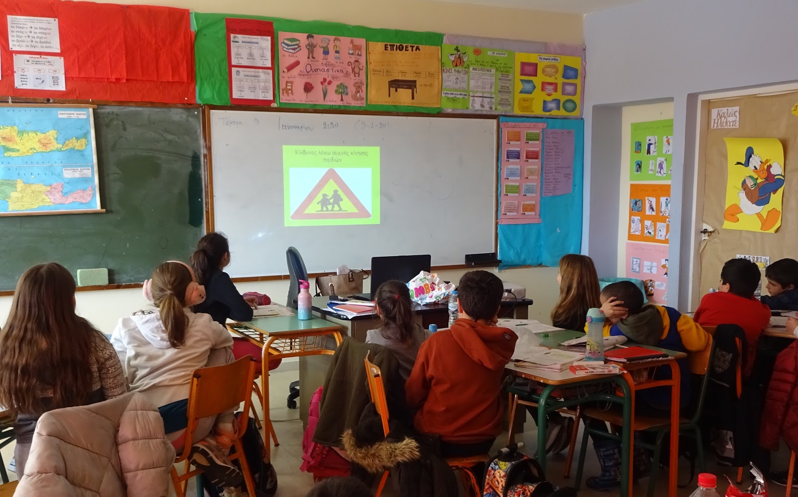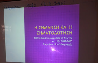 Αρχικά, γνώρισαν και κατέγραψαν σε εννοιολογικό χάρτη τους βασικούς κανόνες οδικής συμπεριφοράς πεζών και οδηγών και είδαν σχετικό βίντεο από το Φωτόδεντρο. Σειρά είχαν τα σήματα οδικής κυκλοφορίας, τα οποία αφού τα γνώρισαν και τα αναγνώρισαν στον προτζέκτορα, έπειτα ανά ομάδες τα κατηγοριοποίησαν και κατόπιν διέκριναν, παρουσίασαν και ερμήνευσαν στην τάξη όσα συναντούν στην περιοχή μας.