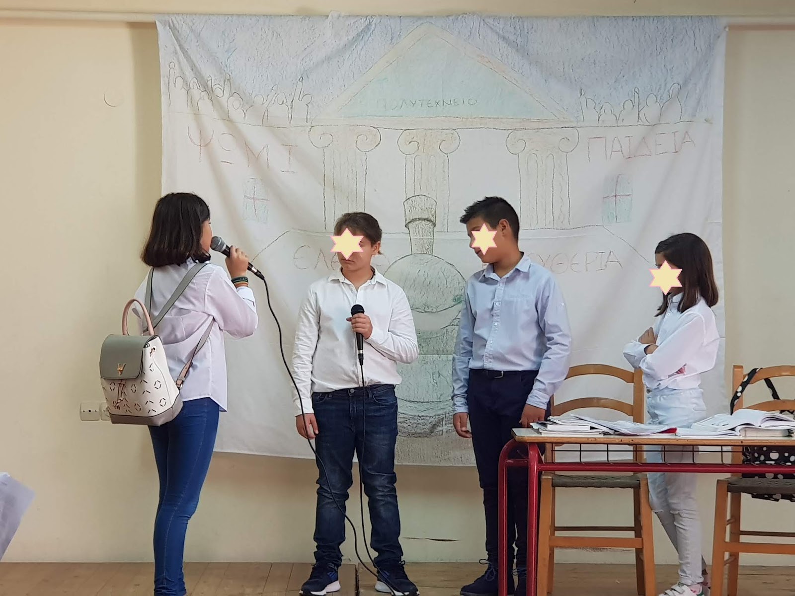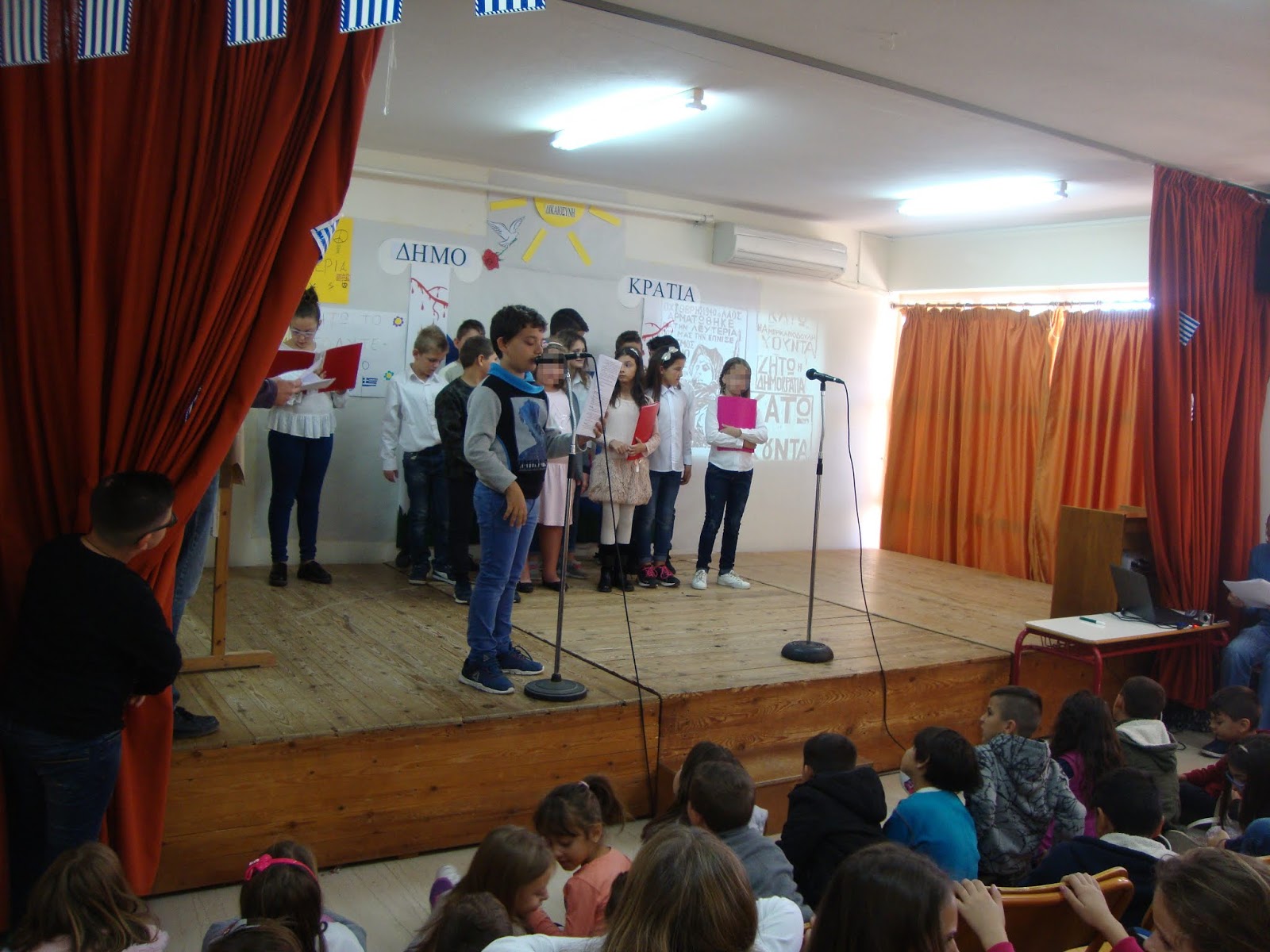 Οι μαθητές του Ε1′ και ΣΤ2′ ετοίμασαν και παρουσίασαν το δικό τους αφιέρωμα για την επέτειο του Πολυτεχνείου, την κορύφωση των φοιτητικών κινητοποιήσεων που παρέσυρε τη νεολαία και τον ελληνικό λαό ενάντια στην 7χρονη δικτατορία της 21ης Απριλίου, στον αγώνα για καλύτερη παιδεία, ελευθερία, δημοκρατία και ανεξαρτησία, αξίες πάντα διαχρονικές και επίκαιρες.