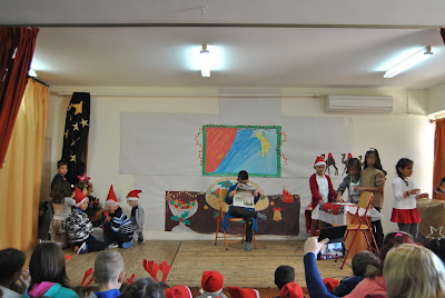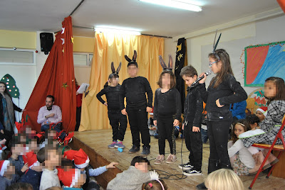 Ξεκίνησε με τα παιδιά της Α’ και Β’ τάξης στην αίθουσα εκδηλώσεων, όπου έκαναν πρόβα για τη χριστουγεννιάτική τους γιορτή!