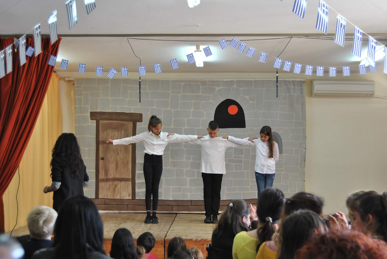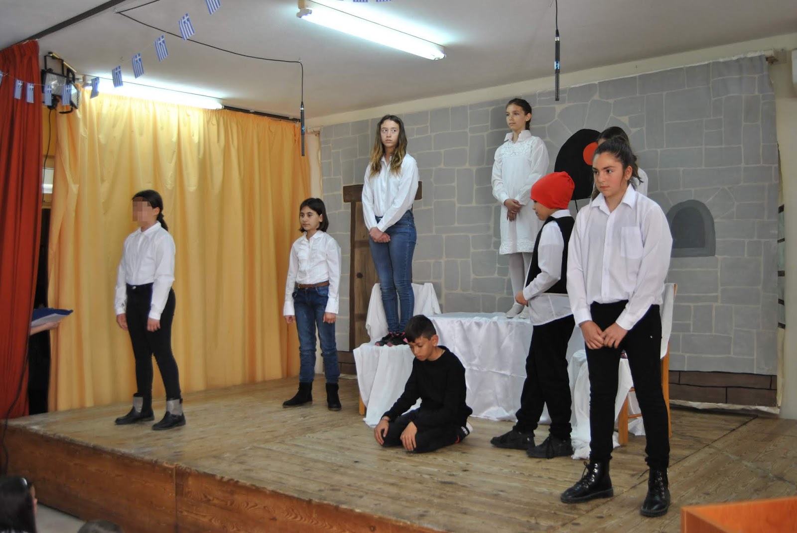 Αφού μιλήσαμε για την σημασία της διπλής αυτής εορτής καθώς και για τους ήρωες του 1821 που πολέμησαν γενναία από την περιοχή μας, η γιορτή ξεκίνησε με το θεατρικό “Ο Ευαγγελισμός της Θεοτόκου”.