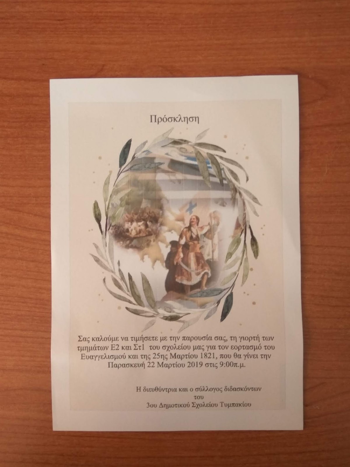 Μία εντυπωσιακή γιορτή για την 25η Μαρτίου, ετοίμασαν και φέτος οι μαθητές της Ε2′ και ΣΤ1′ τάξης του 3ου Δημοτικού Σχολείου Τυμπακίου!