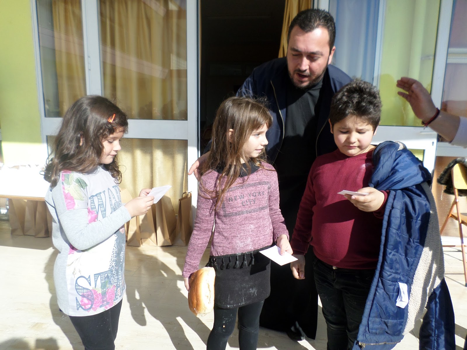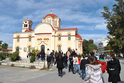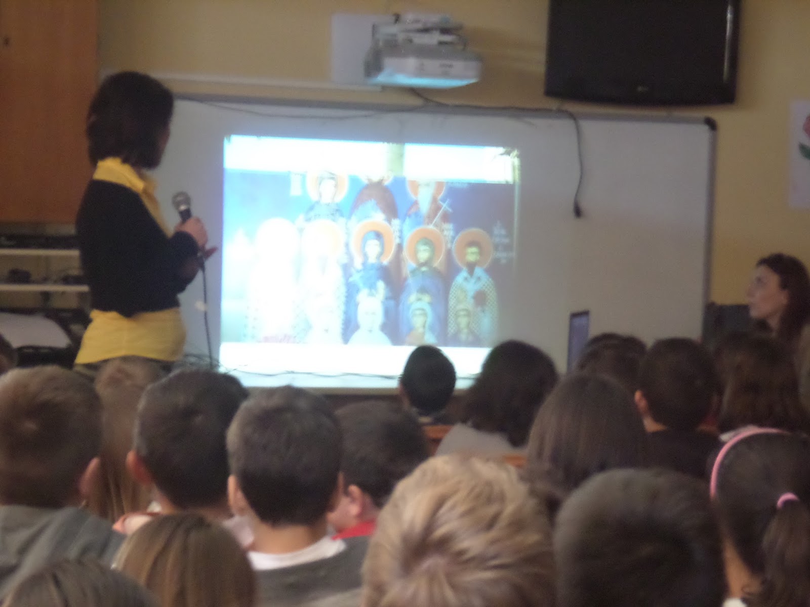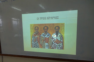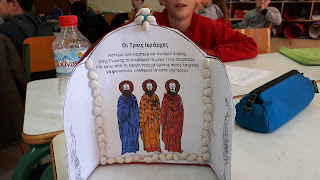 Γι’ αυτό οι μαθητές της Δ’ τάξης, υπό την καθοδήγηση της δασκάλας τους κ. Μαρίας Βασιλάκη, μετά τον εκκλησιασμό, παρακολούθησαν μια παρουσίαση μέσα στην τάξη για το έργο και τη δράση των τριών Ιεραρχών, ζωγράφισαν εικόνες και κατασκεύσαν μια μικρή κορνίζα χρησιμοποιώντας “φασόλια” για να διακοσμήσουν το γραφείο τους.