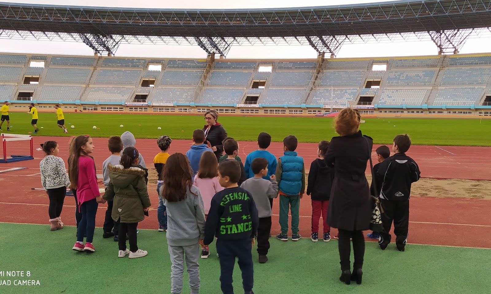 Έπειτα, βγήκαμε στο γήπεδο, είδαμε τις υποδομές του και γνωρίσαμε τα αθλήματα του στίβου.