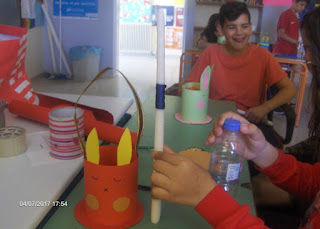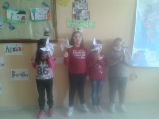 Στο πλαίσιο των εικαστικο-κατασκευών πραγματοποιήθηκαν και άλλες δημιουργίες συνδυασμένες πολλές φορές με άλλα μαθήματα. Ένα παράδειγμα είναι η παρακάτω καρτούλα η οποία αφού κατασκευάστηκε έγινε η αφορμή για την παραγωγή κειμένου οδηγιών