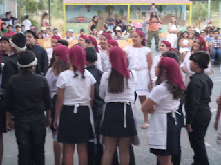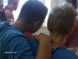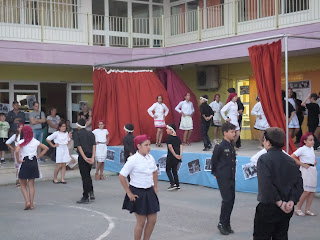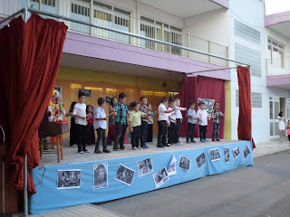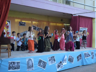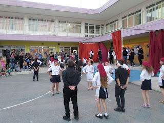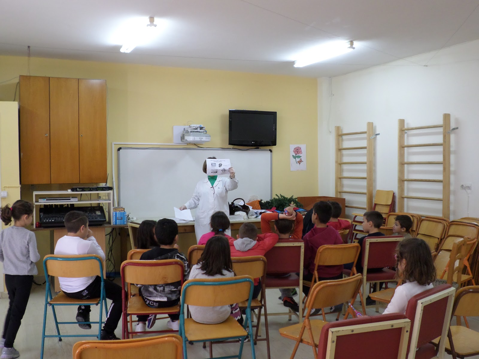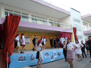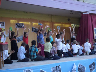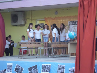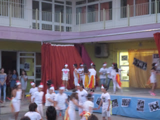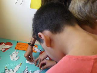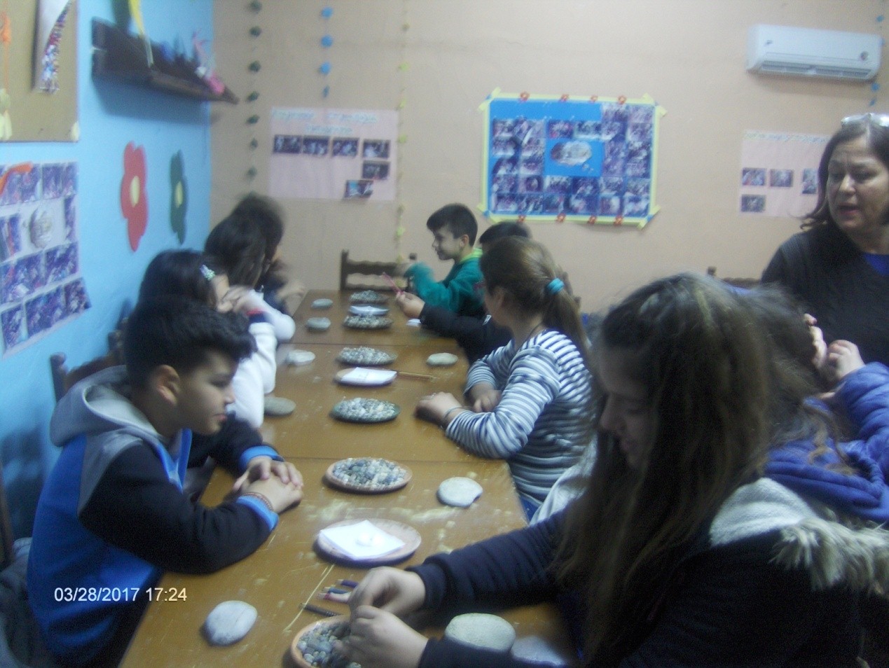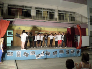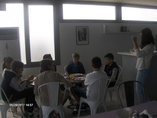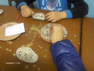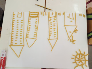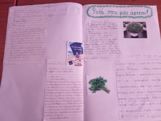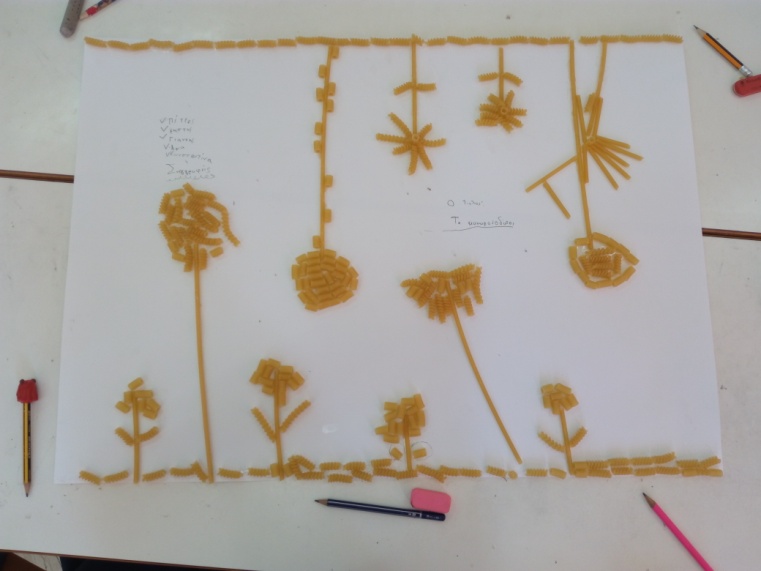 Για παράδειγμα, διαβάσαμε στη γλώσσα το ποίημα «Μακαρόνια» και κάθε ομάδα ανέλαβε να δημιουργήσει μια εικαστική απεικόνιση του.