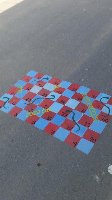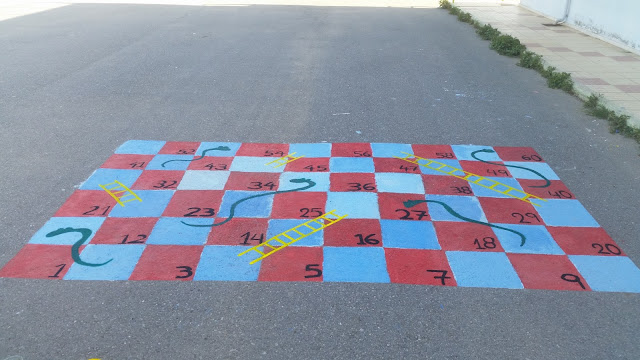 Φρεσκάραμε αρχικά τις βρύσες και τα παγκάκια, καθώς τα στολίσαμε με μαργαρίτες .Έπειτα, δημιουργήσαμε 2 επιδαπέδια παιχνίδια, κουτσό και φιδάκι. Η αυλή μας χρειαζόταν λιγο παραπάνω χρώμα και ζωντάνια και πιστεύουμε ότι τα καταφέραμε!