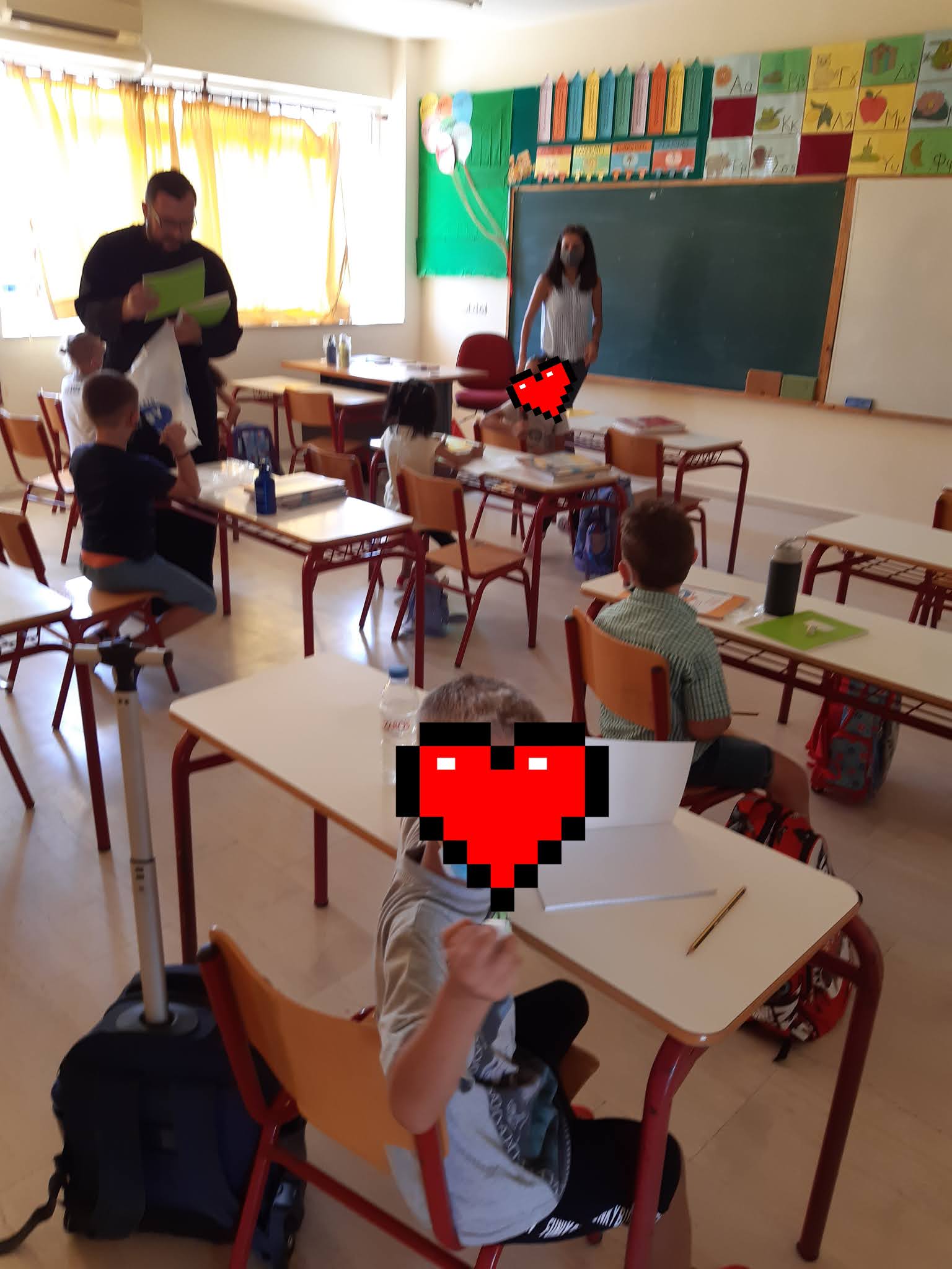 Θα θέλαμε, επίσης, εκ μέρους της Διευθύντριας και του Συλλόγου Διδασκόντων του σχολείου μας να ευχαριστήσουμε τον πατέρα Αντώνιο για τα δώρα που μοίρασε στους μικρούς μας μαθητές, δηλαδή χρωματιστά τετράδια, μολύβια κλπ.
