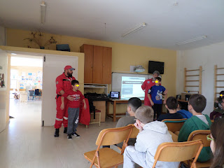 Ηρθαν λοιπόν στο σχολείο μας και αφού μας μίλησαν για τον εθελοντισμό και την αξία του, συζητήσαμε για σωστές συμπεριφορές σε περιπτώσεις ατυχημάτων και πώς πρέπει να αντιδράμε. Έπειτα μας έδειξαν τις πρώτες βοήθειες κι επιμείναμε περισσότερο στην περίπτωση του πνιγμού από κάποιο ξένο αντικείμένο που εισέρχεται στον οργανισμό μας.