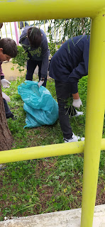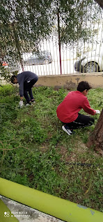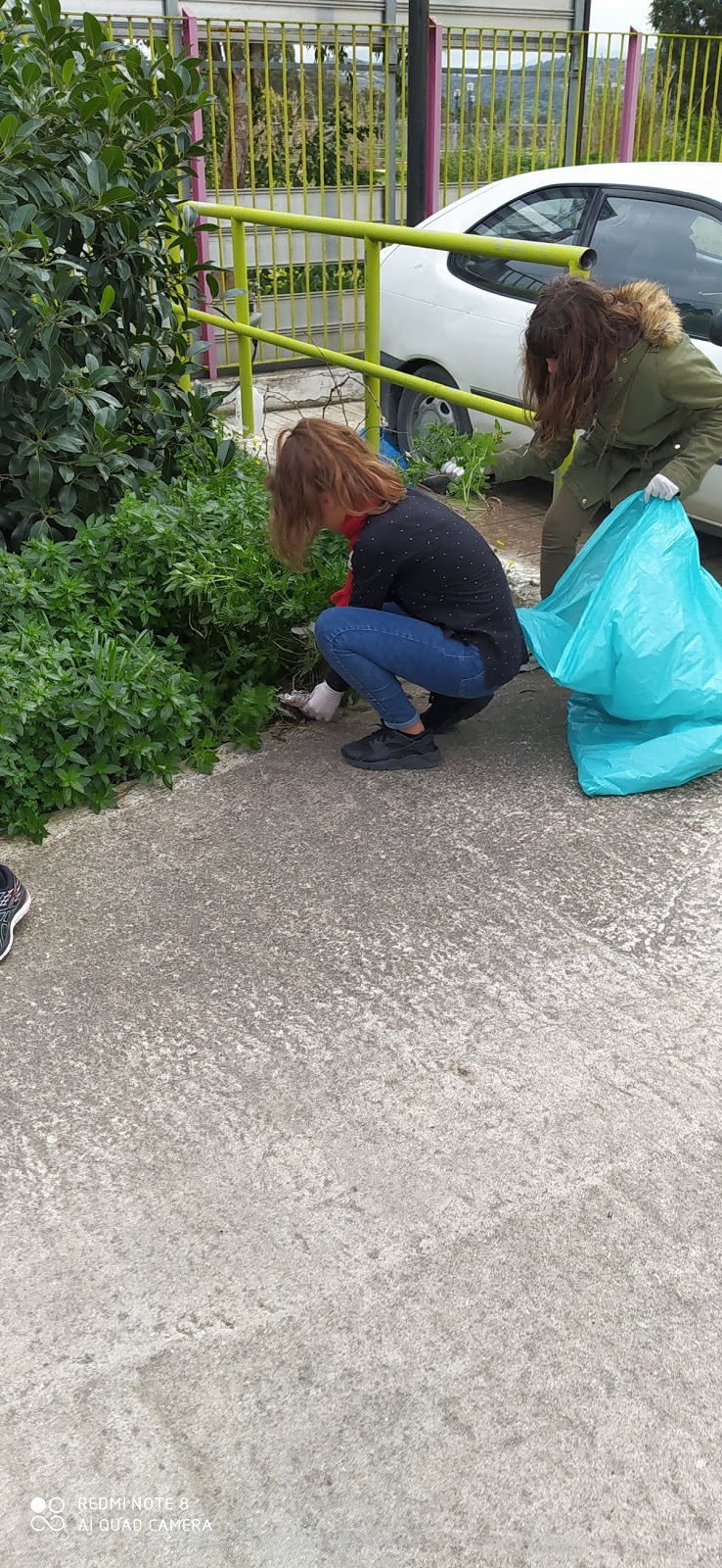 Γι’ αυτό το σκοπό, υπό την καθοδήγηση της κα. Ελευθερίας Αλεγκάκη, της διευθύντριάς μας, οι μαθητές άφησαν για λίγο τα βιβλία, εξοπλίστηκαν με γάντια και σακούλες σκουπιδιών και μεταμορφώθηκαν σε κηπουροί!!