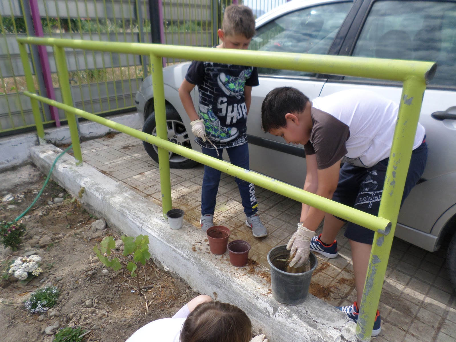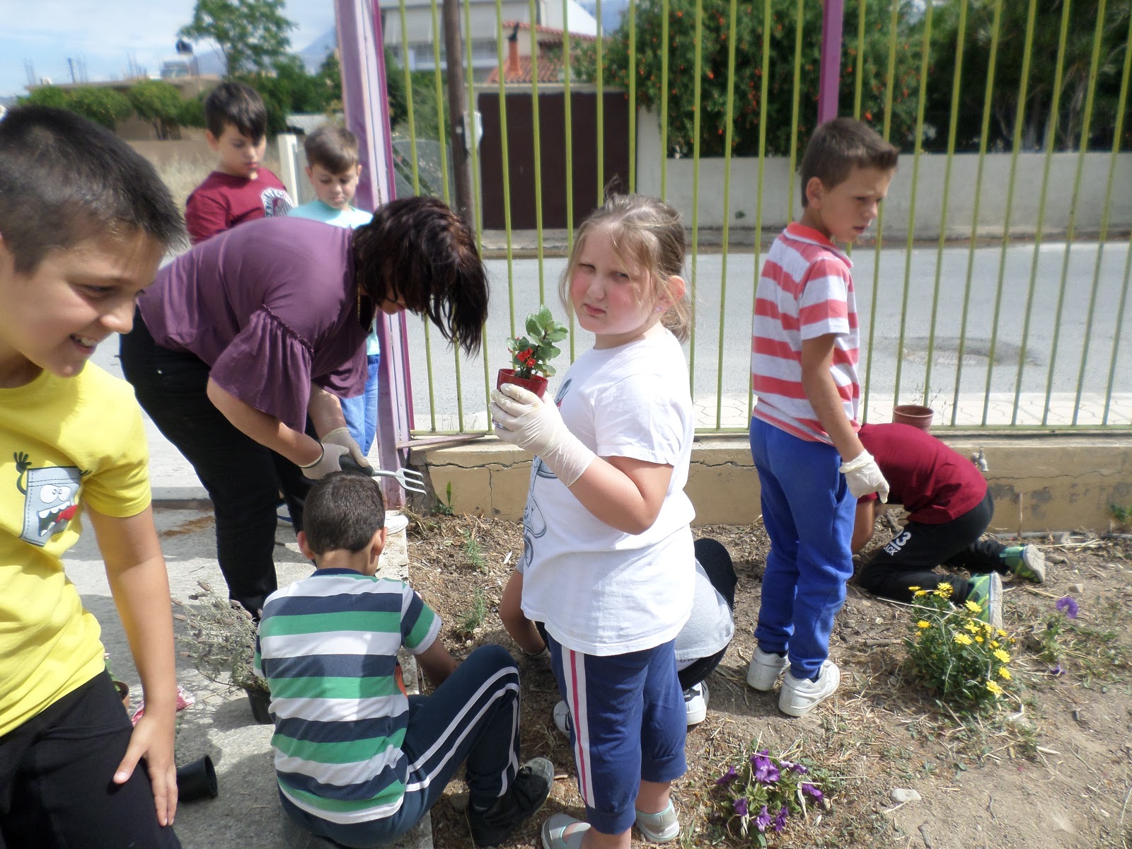 Οι μαθητές του Γ΄1 ασχολήθηκαν με τον καθαρισμό του προκήπιου του σχολείου μας και το φύτεμα αρωματικών φυτών.
