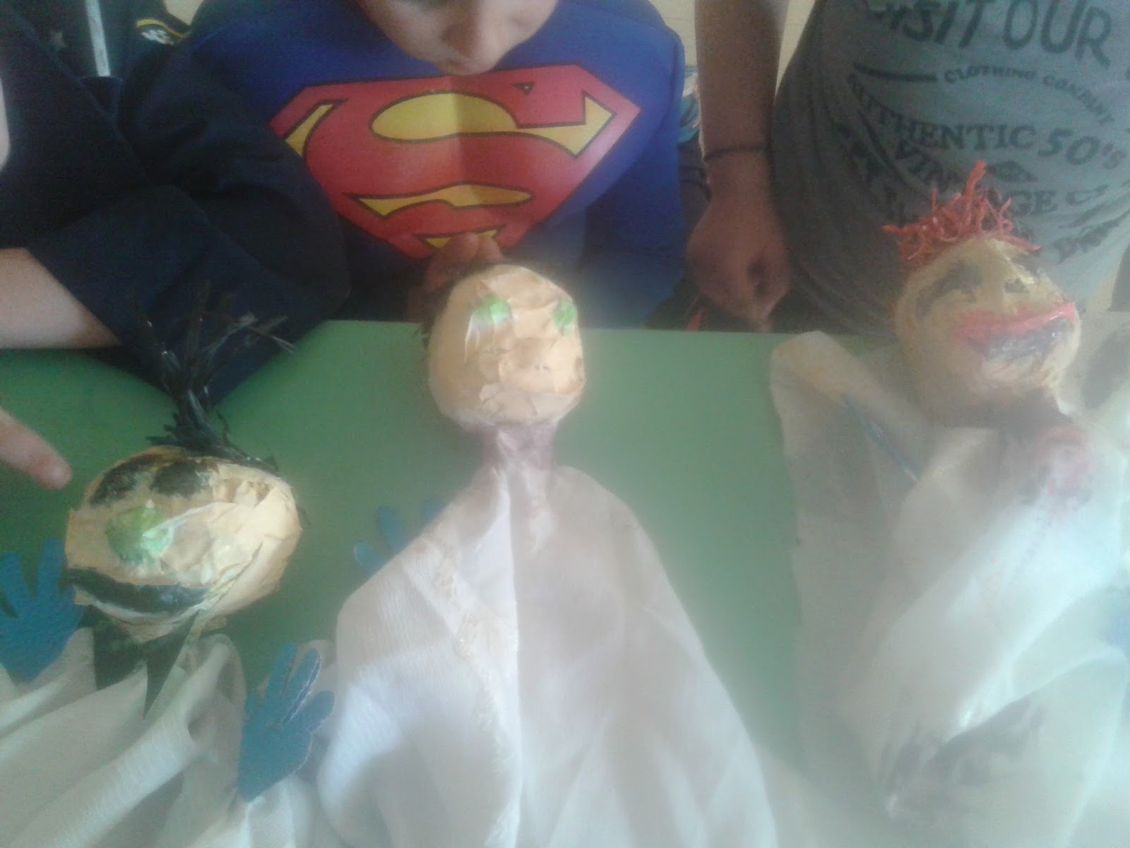 Με αφορμή το κείμενο «Τα χαρτιά ανακυκλώνονται», στο μάθημα της Γλώσσας, οι μαθητές του Γ΄1 ασχολήθηκαν με την κατασκευή κούκλας θεάτρου. Οι μαθητές κατανόησαν και αντιλήφθηκαν πως με ένα ανακυκλώσιμο υλικό, όπως η εφημερίδα , μπορούν να δημιουργήσουν αντικείμενα που μπορούν να φανούν χρήσιμα. Όπως μαρτυρούν και οι ακόλουθες εικόνες.