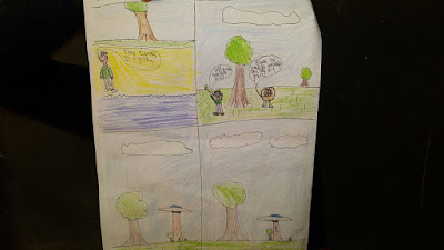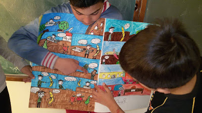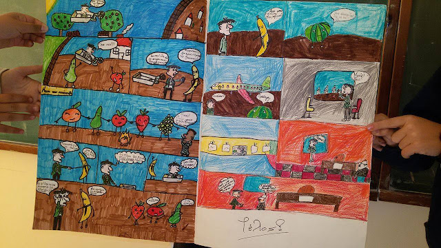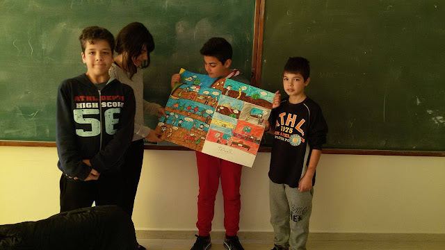 Στα πλαίσια του μαθήματος της Νεοελληνικής Γλώσσας και άρρηκτα συνδεδεμένα και με το μάθημα της Αισθητικής Αγωγής, (προάγοντας την διεπιστημονικότητα) οι μαθητές και μαθήτριες του Στ’2 χωρίστηκαν σε ομάδες των τεσσάρων με πέντε ατόμων και δημιούργησαν. Οπλίστηκαν με πολύ φαντασία και δημιουργικότητα, και υλοποίησαν τη δραστηριότητα 3, στη σελίδα 21 του Βιβλίου του μαθητή (γ τεύχος). Συγκεκριμένα, έφτιαξαν εικονογραφημένες ιστορίες για την τάξη τους, συνεχίζοντας την ιστορία του ταξιδιού του Πίκου Απίκου. Παρακάτω παρατίθενται σχετικές φωτογραφίες με το υλικό, που παράχθηκε από τα παιδιά, αλλά και με την παρουσίασή τους μέσα στην τάξη, ενώπιον των συμμαθητών/τριών τους.