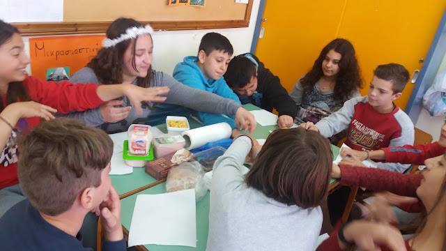 Τα σαρακοστιανά εδέσματα από εχθές δίνουν και παίρνουν! Πρότεινα λοιπόν στα παιδιά να ξαναγιορτάσουμε σήμερα (Τρίτη) τα κούλουμα. Ο καιρός μας τα χάλασε και δεν βοήθησε να κάνουμε στην αυλή το μίνι πικ-νικ που προγραμματίσαμε, αλλά με καλή θέληση περάσαμε πολύ όμορφα εντός τάξης! Εφόσον είχαμε κάνει αναφορά την προηγούμενη παρασκευή στα “κούλουμα” , στα ήθη και έθιμα τόπων, στη σαρακοστή, στα διάφορα σαρακοστιανά εδέσματα, γευτήκαμε παρέα μερικά απο αυτά!